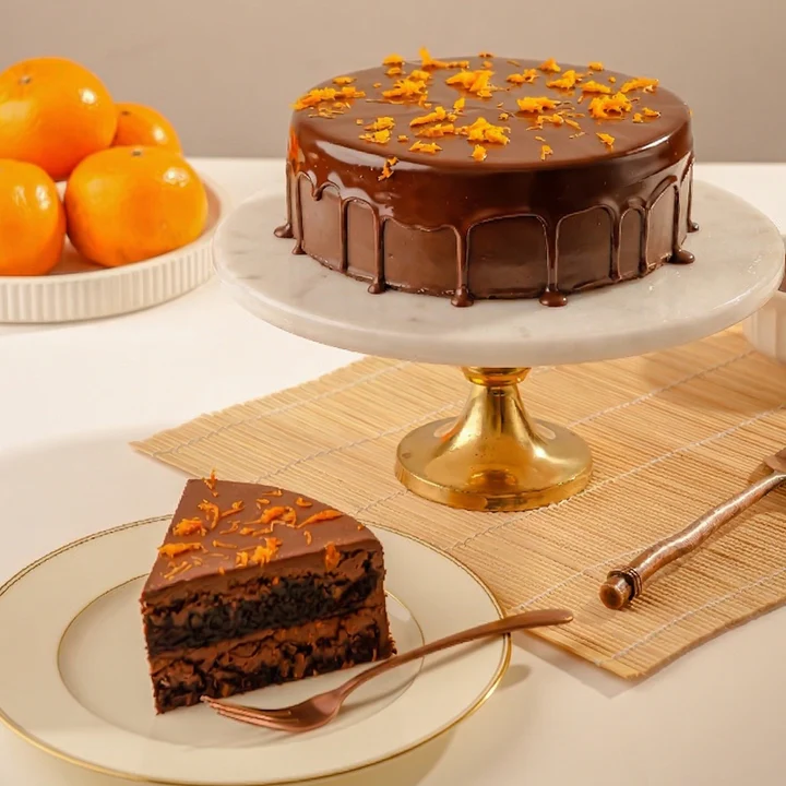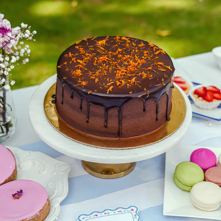 Made with moist layers of dark chocolate cake infused with flavours from fresh oranges, each slice is deep, chocolatey, and gently fragrant with citrus. The richness of the chocolate is balanced by the citrusy freshness of real oranges, creating a flavour that feels indulgent yet refreshing at the same time.